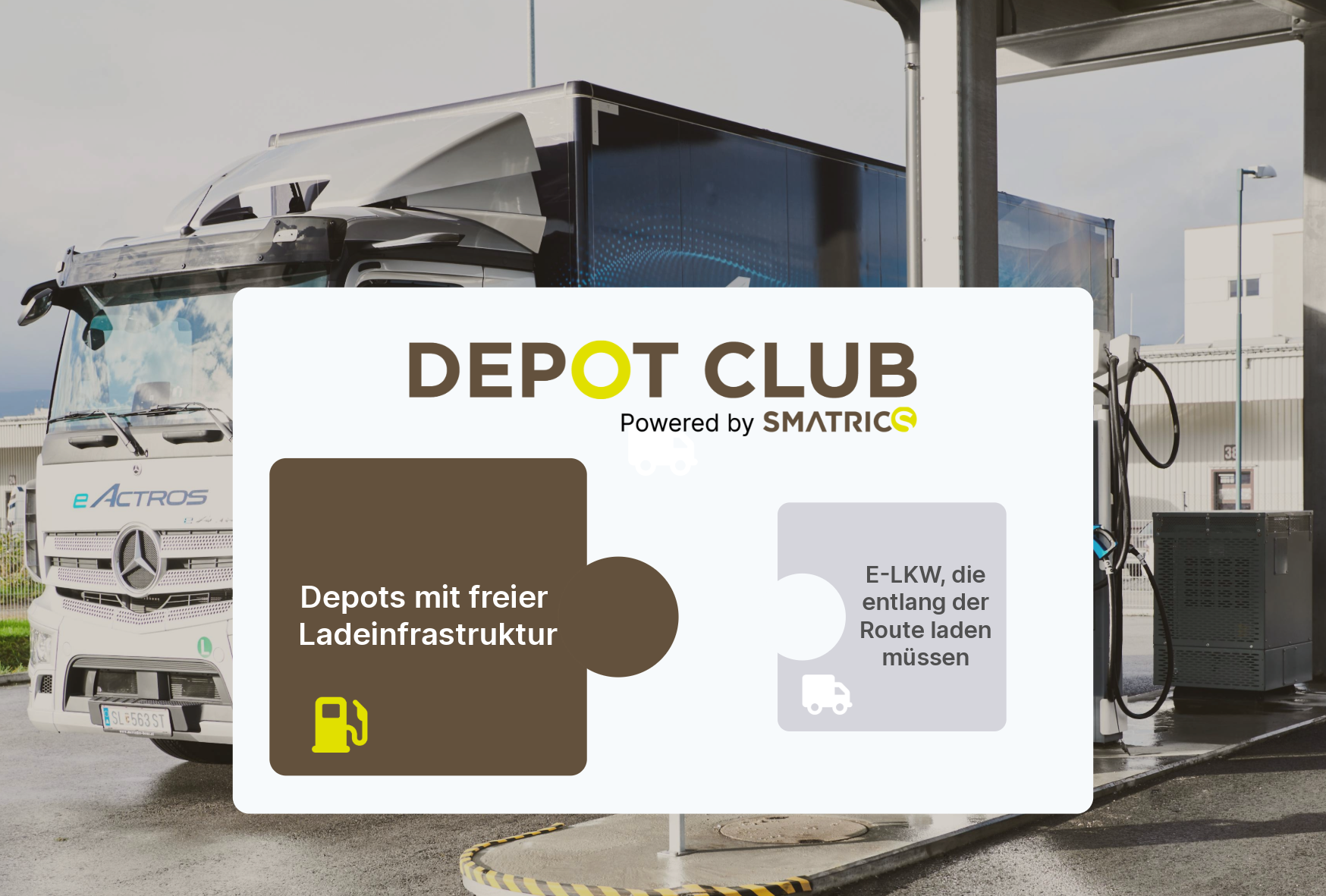 Der Depot Club ist ein kooperatives Netzwerk, das Logistiker miteinander vernetzt. Unternehmen mit eigenen Ladestationen können freie Kapazitäten gezielt für berechtigte Mitglieder und deren E-LKW öffnen.